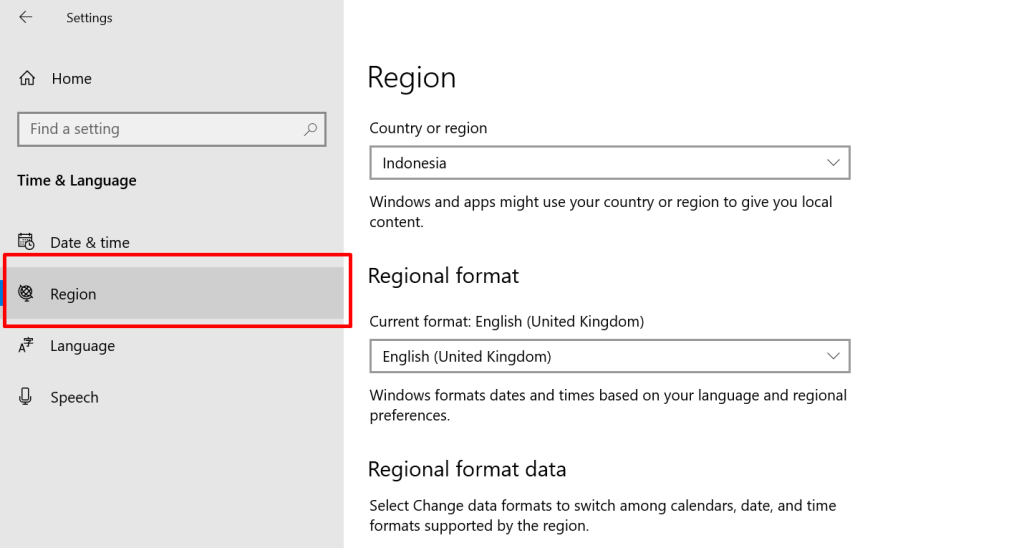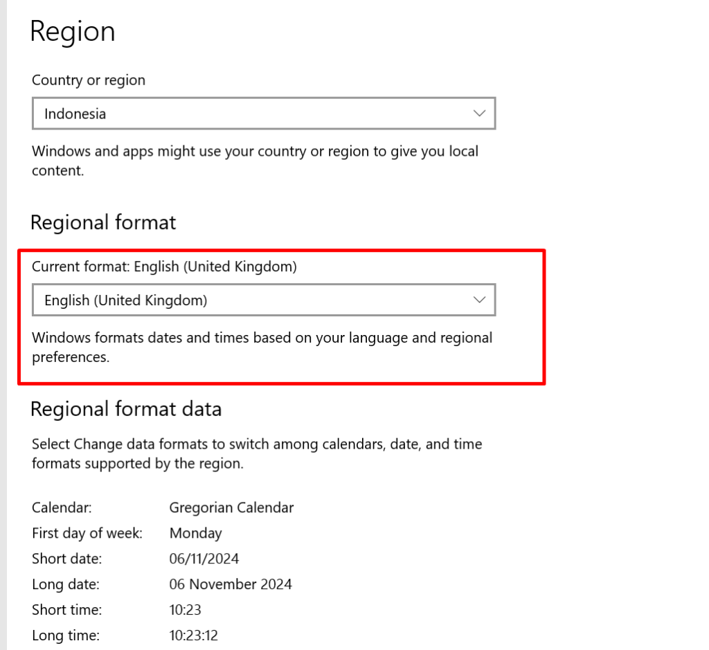 3. Selanjutnya, ubah regional format ke English (United Kingdom).