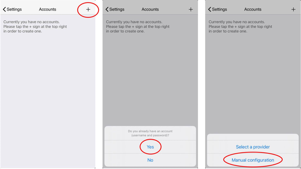 4. Selanjutnya, pilih icon +, kemudian tekan Yes dan pilih Manual Configuration.