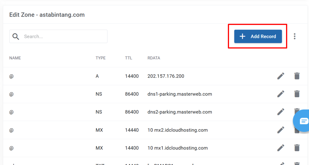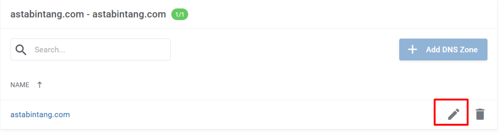 4. Selanjutnya, pilih domain yang Anda ingin tambahkan, kemudian klik icon pensil.
