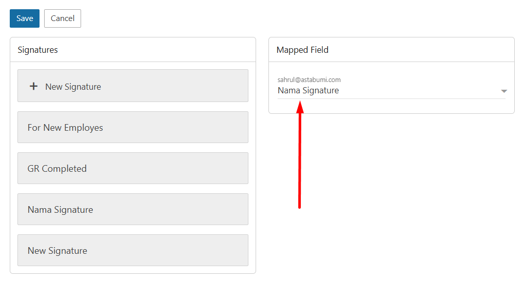 5. Selanjutnya, pilih signature yang sudah Anda buat, kemudian tekan tombol Save.